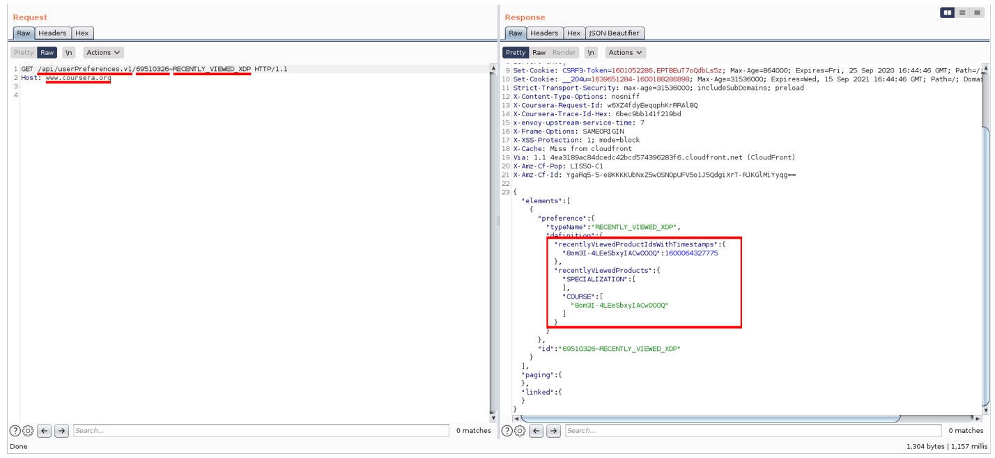 In a year where “remote everything” became the norm, on-demand and e-learning courses, and the vendors powering these services, saw exponential growth. With this and as part of our ongoing mission to help organizations develop and deploy more secure software and applications, the Checkmarx Security Research Team decided to analyze the security posture of Coursera in accordance with the company’s Vulnerability Disclosure Program. According to its website, “Coursera partners with more than 200 leading universities and companies to bring flexible, affordable, job-relevant online learning to individuals and organizations worldwide.” The Coursera network includes “82 million learners, 100+ Fortune 500 companies, and more than 6,000 campuses, businesses, and governments.” Coursera’s Vulnerability Disclosure Program specifically notes that access control issues are a major concern: “We [Coursera] consider security issues to be issues when you can perform: Access data that you are otherwise not authorized to access normally as a learner (…) Affects another learner outside of normal interactions on the platform (…) Accessing Coursera’s internal administrative control systems.” Through our research, we discovered multiple API issues, such as user/account enumeration via the reset password feature, lack of resources limiting on both a GraphQL and REST API, and a GraphQL misconfiguration. But specifically, the Broken Object Level Authorization (BOLA) issue we found perfectly fits Coursera’s access control concerns. Impact Summary The BOLA API vulnerability our team discovered affected the users’ preferences. Even anonymous users were not only able to retrieve their preferences, but also change them. Some of these preferences, such as recently viewed courses and certifications, also leaked some metadata (e.g. activity date/time). This vulnerability could have been abused to understand general users’ courses preferences at a large scale, but also to somehow bias users’ choices, since manipulating their recent activity affected the content rendered on Coursera’s homepage for a specific user. What We Found While interacting with Coursera’s web application as regular users (learners), we noticed that recently viewed courses were displayed in the user interface. To render this information, we spotted several GET API requests to the same endpoint: /api/userPreferences.v1/{USER_ID}~{PREFERENCE_TYPE}. The {USER_ID} was almost obvious and of course we started playing with it to test API1:2019 Broken Object Level Authorization. After several successful requests to retrieve preferences of several user accounts controlled by us, we were able to enumerate ten different preference types ({PREFERENCE_TYPE}): ONBOARDING, INVITATION, PAYMENT, saveCreditCard, HONORS, S12N_UPGRADE, ADMIN_SELECTED_PARTNER, PROMOTION_LANDING_PAGE, GENERIC, RECENTLY_VIEWED_XDP. It was obvious that we were dealing with an authorization issue: one user was accessing another user’s data – and not only its preferences, but also some metadata such the exact date/time of its activity. As next step we started stripping the original request of cookies and headers, to come up with the conclusion that even anonymous users would have access to any user preferences (see Figure 1). Figure 1: Anonymous request to retrieve arbitrary user recently viewed courses But we were not done yet. Due to the predictability of REST APIs, the next natural step would be to replace the HTTP verb from GET to PUT to test whether we were also able to modify the user preferences. No special creativity was needed to craft a valid payload: we took it from one of our GET requests and replaced courses’ identifiers and timestamps. As shown in the picture below, the request payload was sent back in the HTTP response, suggesting preferences were successfully set. Figure 2: Modifying another user’s recently viewed courses You can watch the proof-of-concept video here. Risk Assessment Unauthorized users’ data access is critical by definition, becoming even more relevant when it is also possible to manipulate such data. Authorization issues directly impact data privacy, data integrity, user trust, and ultimately business reputation. The risk is increasingly high depending on what type of data unauthorized users get access to, or are able to manipulate (e.g., financial/payments). Recommendations Authorization issues are, unfortunately, quite common with APIs. It is very important to centralize access control validations in a single, well and continuously tested and actively maintained component. New API endpoints, or changes to the existing ones, should be carefully reviewed regarding their security requirements. Summary of Disclosure and Events The Checkmarx Security Research Team responsibly notified Coursera, providing a detailed security advisory with research findings, instructions to reproduce the issues, and recommendations, which Coursera followed to address and mitigate the security issues. Timeline October 5, 2020 – Checkmarx sent full report to Coursera’s security team October 26, 2020 – Coursera acknowledged receiving the report and working on it December 18, 2020 – Coursera wrote they resolved all issues January 2, 2021 – Checkmarx sent a re-test report with one new issue May 24, 2021 – Coursera confirmed all issues are fixed July 8, 2021 – Public disclosure Final Words It was a pleasure working with the Coursera security team. Their professionalism and cooperation, as well as the prompt ownership they took, are what we hope for when we engage with software companies. Kudos! Generally speaking, API access control issues are one of the biggest security problems facing APIs. As vulnerable APIs increasingly fall into adversaries’ sights, it’s critical that developers receive proper education on best practices for embedding security into their design from the get-go – which CxCodebashing can help with. This