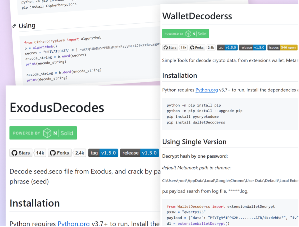 The attack targeted users of Atomic, Trust Wallet, Metamask, Ronin, TronLink, Exodus, and other prominent wallets in the crypto ecosystem. Presenting themselves as utilities for extracting mnemonic phrases and decrypting wallet data, these packages appeared to offer valuable functionality for cryptocurrency users engaged in wallet recovery or management. However, behind the scenes, these packages would fetch malicious code from dependencies to covertly steal sensitive cryptocurrency wallet data, including private keys and mnemonic phrases, potentially granting the attackers full access to victims’ funds.