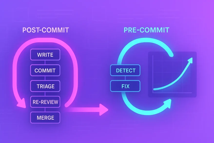 AI made it cheap to write code. Running it could cost you more than you think. A consistent pattern and a new challenge are starting to emerge among development teams leveraging AI to generate code. Teams celebrate a bump in efficiency and then watch PR queues swell, security backlogs grow, and delivery slow. The bottleneck is not keystrokes; it’s our ability to secure the code as fast as it’s being generated. If code quality and risk posture are decided after the commit, you pay a “rework tax” that multiplies as the volume of code rises. This tax is why pre-commit agentic AI security is crucial: When AI is in the loop, helping write “live” code, Agentic AppSec AI doesn’t wait to comment on a pull request after a scan finishes, but rather, ‘sits’ together with the developer while code is being written to prevent mistakes and ship secure changes on the first try. Why post-commit breaks down at AI speed Post-commit assistance still has value, but it is reactive by design. DORA reports slower throughput and weaker stability as GenAI use climbs. More unchecked code enters the pipeline without early prevention, which multiplies PR loops, review delays, and rework. When issues show up in PRs or build results, you trigger a long chain of handoffs. The developer has already context-switched to the next task. Now they must jump back into the previous code, recreate the problem, debate fix approaches in comments, run again, and wait for another review. Multiply that by hundreds of generated code snippets, upgrades, and merges. Four problems show up fast: Rework tax: Every hop in the loop adds time. A simple fix can take hours or days once you include triage and re-review. Context loss: The best moment to fix a bug is right when the developer wrote it. Minutes later is worse. Days later ancient history for the developer, and requires more resources and attention. Flooded PRs: Comment storms and scan noise delay merges and sap energy. Engineers start to treat security as a second inbox. Debt by default: If the team is judged by throughput, issues get deferred. Debt rises quietly until it is loud and costly. What is pre-commit agentic security? Think of an AI teammate that prevents risk before code ever leaves the developer’s workstation. It runs where the developer works, understands the file and project context, and gives fixes that are specific to the code that is being edited. It also enforces a light gate at commit time, so obviously insecure changes do not enter the pipeline. That is the job description for our Developer Assist agent inside Checkmarx One Assist. Here is how it maps to real developer moments: Real-time protection while typing. The agent detects vulnerabilities early and offers targeted fixes that fit the code style and framework in use. The fix cycle shrinks from weeks to minutes because the developer never needs to leave the IDE. Find and fix breaking changes during upgrades. The Agent automates dependency impact analysis, highlights API differences between versions, and suggests the code updates required. Upgrades move from risky all-hands moments to routine work. Smarter SCA in the IDE. The agent surfaces license and risk information for any chosen package, flags malicious or suspect options, and recommends safer alternatives before you import. Secrets detection and remediation. The agent catches leaked credentials as you write and guides safe rotation and handling. Context-aware fix suggestions. Not generic snippets, but fixes that align to the specific sink, source, and data flow in your codebase. Pre-commit protection. Lightweight checks at commit time stop insecure changes at the source so fewer issues hit CI. Pre-commit Assistant Translated into Numbers: Time and Efficiency Here is a simple back-of-the-napkin example. Say your team upgrades a core package from v3 to v4. It is referenced in 12 files with about 30 call sites. Here is what that looks like three different ways. Manual path Find every usage with code search, confirm each reference, and map the blast radius. About 45 minutes. Read release notes and migration guides, compare old and new APIs, and sketch the refactor plan. About 60 minutes. Update imports, fix each call si te, re-run tests, and chase compile errors. About 150 minutes. Open a PR, wait on CI, address comments, and re-run. About 90 minutes. Total time about 5.75 hours. At 100 dollars per hour that is roughly 575 dollars for one upgrade. Post-commit assistant path Commit the upgrade, let your build pipeline flag breakages, then accept suggested fixes and iterate in the PR. You still pay the triage and re-review tax, but some edits go faster. Total time about 3.5 hours. About 350 dollars. Pre-commit with Developer Assist and Safe Refactor Select the target version in the IDE. Safe Refactor analyzes the codebase, lists breaking changes across the 12 files, and proposes concrete edits at each call site. Apply edits, compile locally, run tests, and commit once. Total time about 1.5 hours. About 150 dollars. Numbers will vary by repo and library, but the pattern is consistent. Prevention compresses loops. Short loops keep throughput and stability. Long loops add risk, noise, and cost. Where post-commit still matters Pre-commit should be the first line of defense, not the only line. You still want pipeline and PR scans as a fail-safe and as proof that standards were met. You still need portfolio-level visibility so AppSec and engineering leaders can decide what matters most across applications, not just inside one IDE session. In our world, this is where ASPM comes in. It aggregates and correlates findings, applies organizational risk logic, and feeds those priorities back to developers so the pre-commit agent is guided by what the business cares about. A quick tour of developer workflows that benefit immediately Writing new code: Real-time detection and context-aware fixes keep issues from ever leaving the editor. Adding or upgrading 