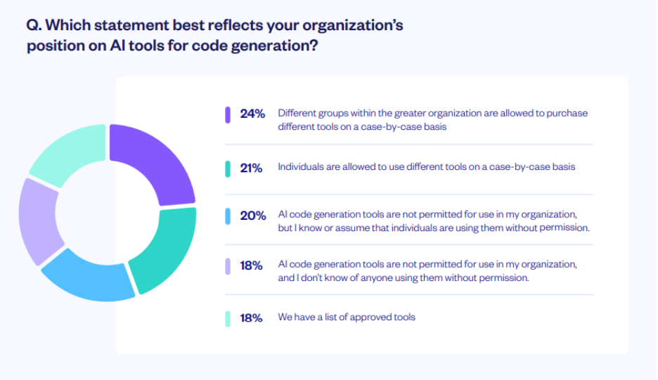As the research revealed, one in five developers admits to using AI coding assistants without permission, and only 18% of organizations have formal policies for dealing with AI-generated code.