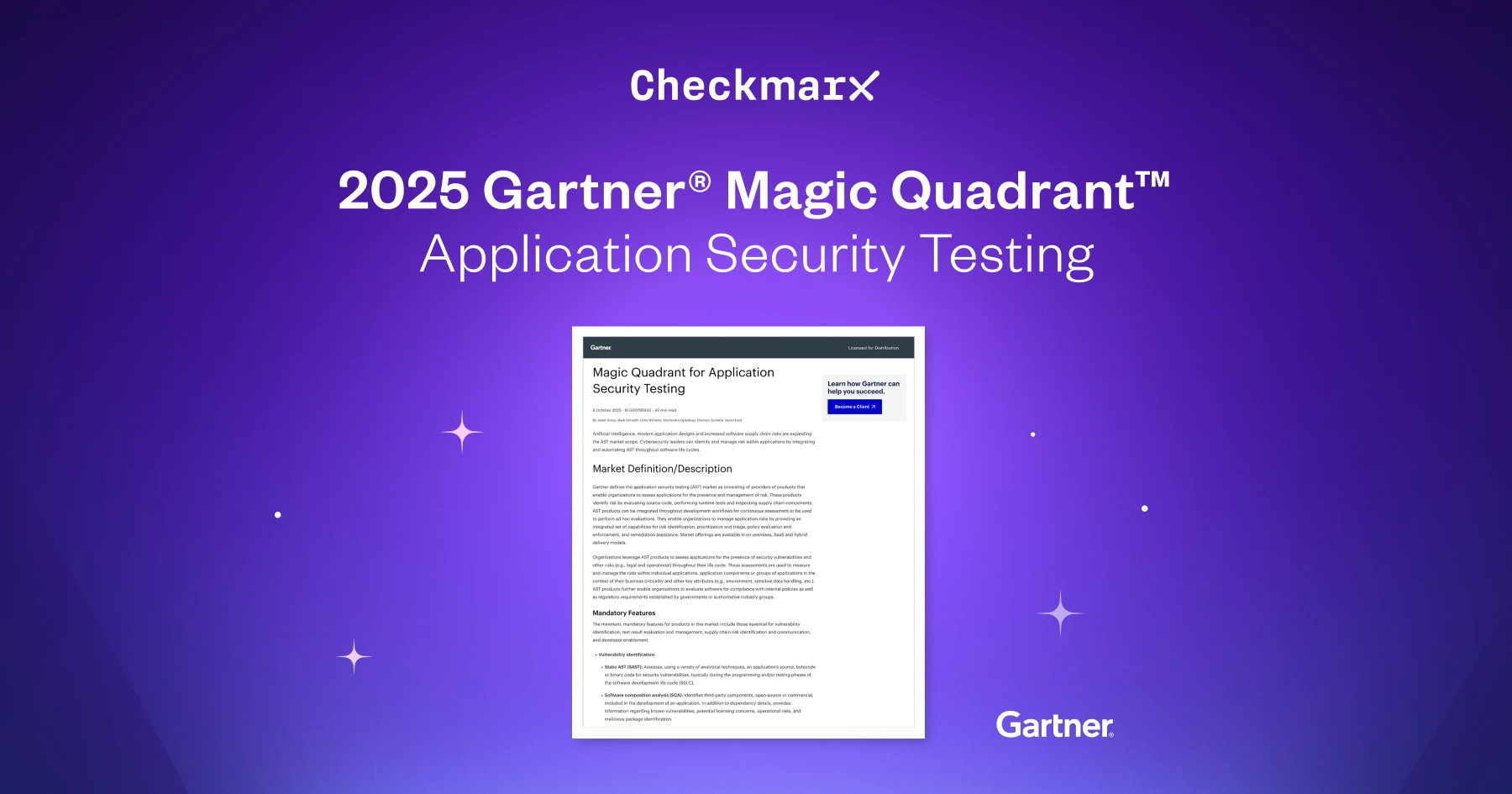Gartner, Magic Quadrant for Application Security Testing, Jason Gross et al, October XX, 2025. Gartner does not endorse any vendor, product or service depicted in its research publications, and does not advise technology users to select only those vendors with the highest ratings or other designation. Gartner research publications consist of the opinions of Gartner’s research organization and should not be construed as statements of fact. Gartner disclaims all warranties, expressed or implied, with respect to this research, including any warranties of merchantability or fitness for a particular purpose. Magic Quadrant is a registered trademark of Gartner, Inc. And/or its affiliates and is used herein with permission. All rights reserved.